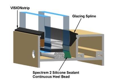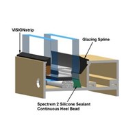 VISIONstrip is a precision-extruded glazing seal consisting of an EPDM rubber extrusion positioned at the sightline with a 100% solids, highly adhesive, cross-linked performed butyl sealant bonded below the rubber extrusion.